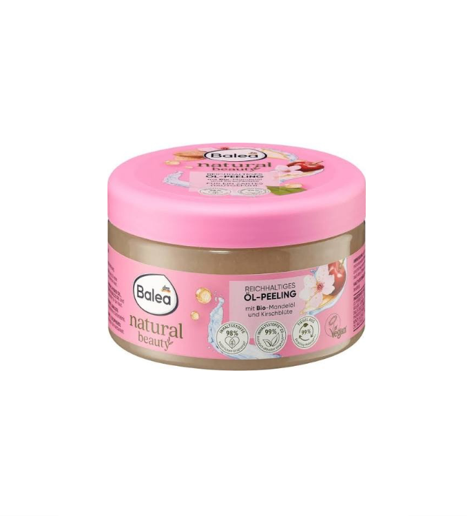 Le Natural Beauty Peeling de Balea est un gommage à l’huile riche avec de l’huile d’amande bio et de la fleur de cerisier.
