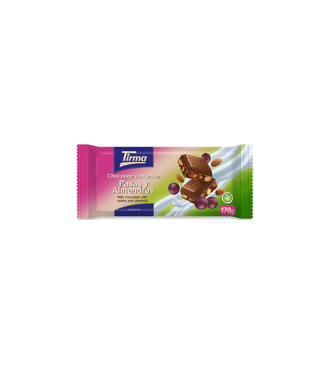 Tirma Chocolat au lait avec raisins secs et amandes entières. 170g.