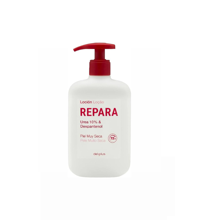 Cette lotion fait partie de la gamme « Repara » (Répare) et est la formule de secours de Deliplus, conçue spécifiquement pour les peaux très sèches, rugueuses ou squameuses qui nécessitent une intervention intense et durable.