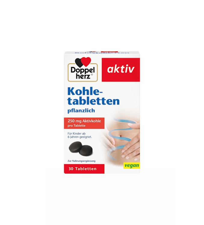 Les comprimés de charbon actif Doppelherz, grâce à leur teneur en charbon actif, peuvent soulager les ballonnements excessifs. La structure du charbon actif fixe les gaz, réduisant ainsi les flatulences. Pour cet effet, prenez 1 gramme de charbon actif au moins 30 minutes avant et 1 gramme après les repas. Ces comprimés conviennent aux enfants de 6 ans et plus.
