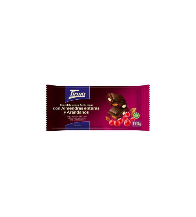 Tirma Chocolat Noir 53% avec Amandes Entières et Canneberges. 170g